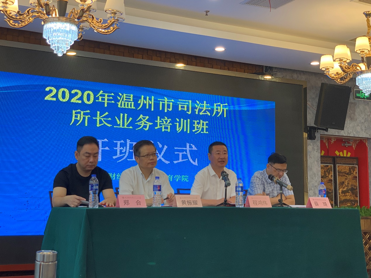 本次培训班是我院在今年疫情期间举办的第一个线下培训班,对于疫情防控背景下培训工作的全面开展具有指导性意义。温州市司法局副局长程鸿伟,温州市司法局人民参与和促进法治处处长郑合,上海财经大学继续教育学院副教授、培训部主任黄振耀出席开班仪式。仪式由温州市司法局社区矫正管理局局长薛琦主持。