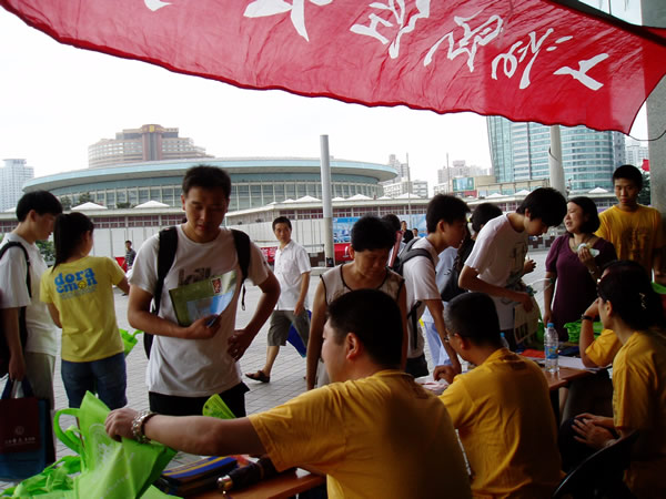 2011年8月6日,继续教育学院副院长钱淑萍、院长助理兼学历拓展部主任徐伟胜、学历教育部主任潘蔚、副主任章健英及招生团队成员一行9人,参加了上海市成人高校在八万人体育场举行的联合招生大型咨询活动。