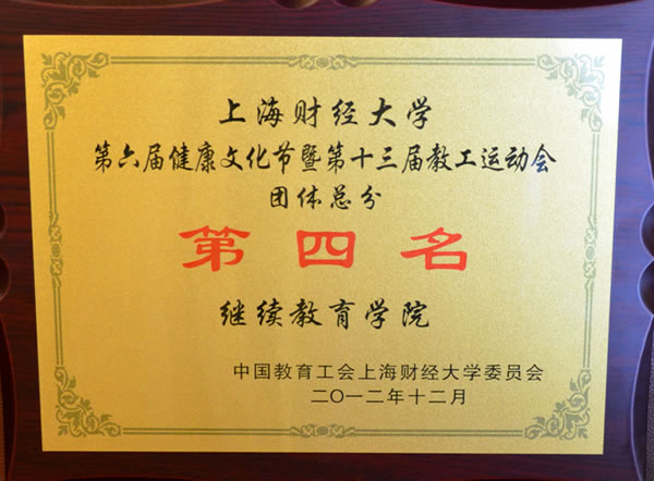 2013年1月8日上海财经大学隆重召开了“上海财经大学第六届教职工健康文化节闭幕式暨2013年迎新联欢会”,在本次联欢会上学校工会向2012年获得各类文体活动的先进单位颁发了奖牌和奖金支票。
