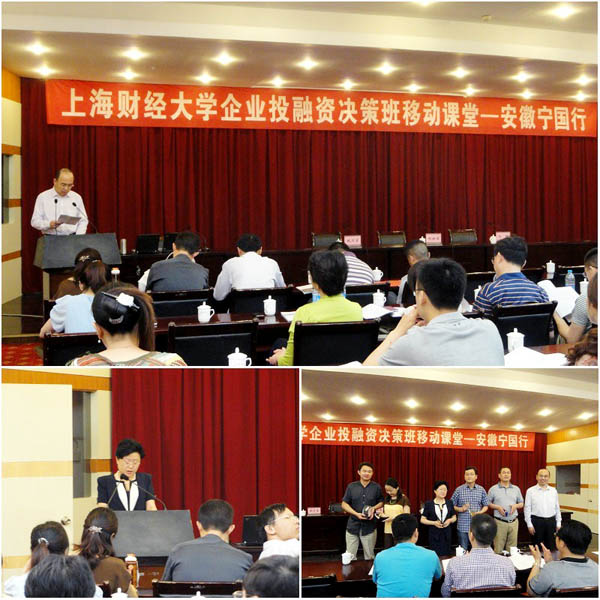 5月25日上午,上海财经大学企业投融资决策与风险管理班在宁国市政府会议厅如期举行。本次课程特邀著名财税资本运营专家臧日宏教授做《企业融资路径分析》课程讲授。在开班典礼上,宁国市政府胡琳娟副市长与上海财经大学继续教育学院刘鹏院长分别致辞,并为本次移动课堂积极促进者颁发“班级特别贡献奖”,以资感谢与奖励。