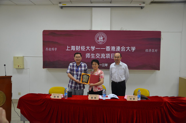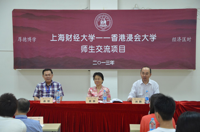 2013年5月29日,“上海财经大学―香港浸会大学”师生交流项目在我校隆重举行。上海财经大学黄颖副校长,香港浸会大学俞旭教授和上海财经大学继续教育学院院长刘鹏教授出席了典礼仪式,同时来自香港浸会大学传理学院的33名师生参加了典礼仪式。