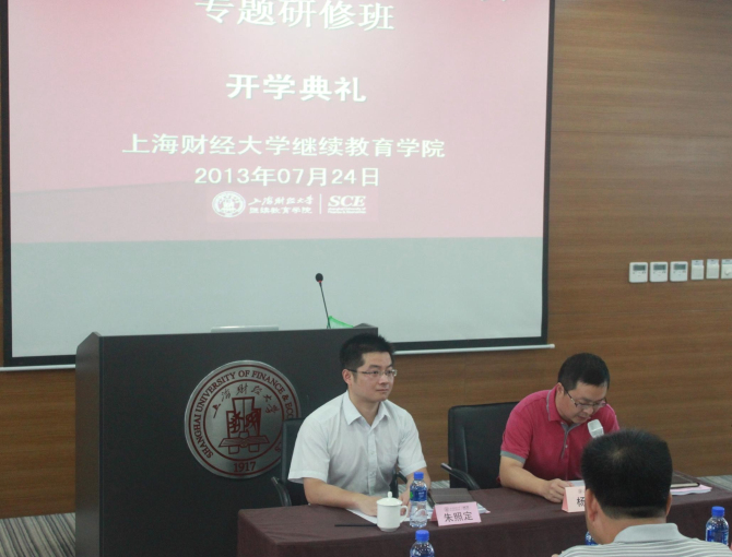 2013年7月24日上午,从江县领导干部金融知识专题研修班典礼在我校中山北一路校区博思楼401报告厅隆重举行。出席本次开学典礼的领导嘉宾是:贵州省从江县委副书记杨军先生、上海财经大学继续教育学院院长助理朱照定先生。参加本次培训的是来自于贵州省从江县各个部门的领导干部。