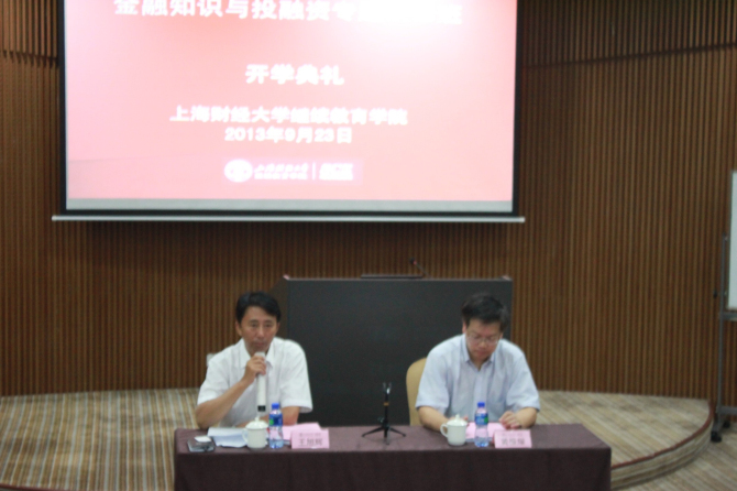 2013年9月23日上午8:30,宿州市领导干部金融知识与投融资专题研修班开班典礼在我校中山北一路校区博思楼405教室隆重举行。宿州市组织部副部长王旭辉先生与上海财经大学继续教育学院院长助理黄振耀教授出席了本次开班典礼。