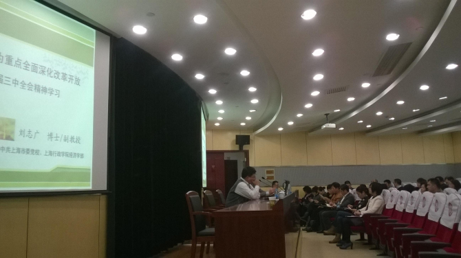 2014年3月28日,我院组织授课教授赴金山区财政局成功举办“金山区财政系统十八届三中全会精神专题培训班”。讲座从改革的目标、重点、主线,以及需要始终坚持的若干原则,四个维度全面分析解读了中央十八大经济体制改革重点及要求。结合国内外经济形势分析,特别强调市场起决定作用是经济体制改革主线,指出要重点落实坚持和完善基本经济制度、加快完善现代化市场体系、加快转变政府职能、深化财税体制改革、强化健全城乡发展一体化体制机制、构建开放型经济新体制等各项财政工作。本次培训赢得了金山区财政局领导与在场全体学员的一致好评。