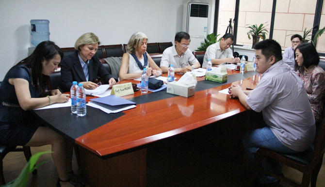 2014年7月5日, 酝酿多时的首轮上海财经大学-蒙彼利埃大学联合培养EDBA专业面试在上海财经大学如期举行。对于此次面试,中法双方高度重视,对于面试流程、人员配置、面试学员的选择以及考核标准进行了多次磋商。为保证面试的严谨与公平,选拔出适合本项目的EDBA学员,决定由中法双方各选派两位资深教授担任此次面试的考官。同时考虑到面试学员语言能力参差不齐,为避免沟通不畅,各配备英法翻译一名。最终确定参与此次专业面试的考官分别为: Monique LACROIX、Anne MIONE、门峰、陈继祥。