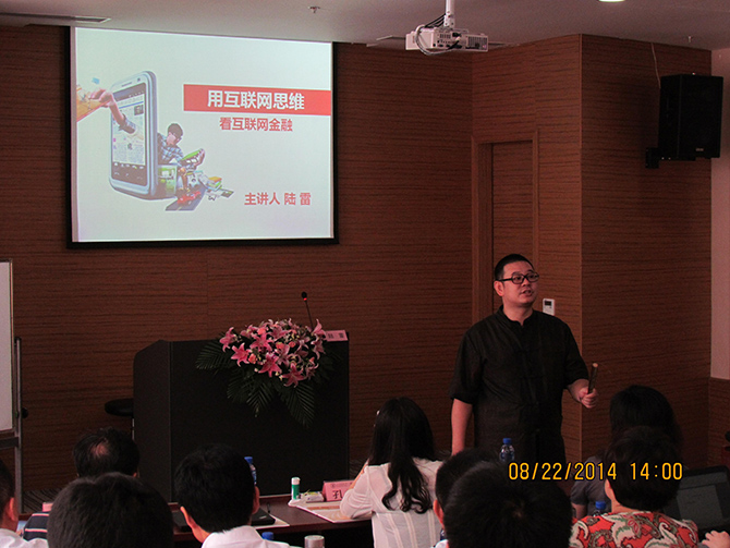 陆雷老师就本期主题“用互联网时代思维看互联网金融”展开精彩演讲,他从当前社会大众普遍关注的热点话题切入主题,与大家探讨互联网对于当今社会的深远影响,引出互联网思维真义,结合社会公众的思维和生活改变对于金融的深层需求,分析并揭示了未来金融互联网化的大势所趋,并重点讲解了当前主要的互联网金融六大模式,与大家一起探讨未来金融发展趋势。陆老师授课诙谐幽默、条理清晰、节奏明快,能够从生动活泼的现实案例发现本质问题,并与现场同学们互动、分析和讨论,为大家指引问题的发展方向,现场气氛热烈,掌声不断。