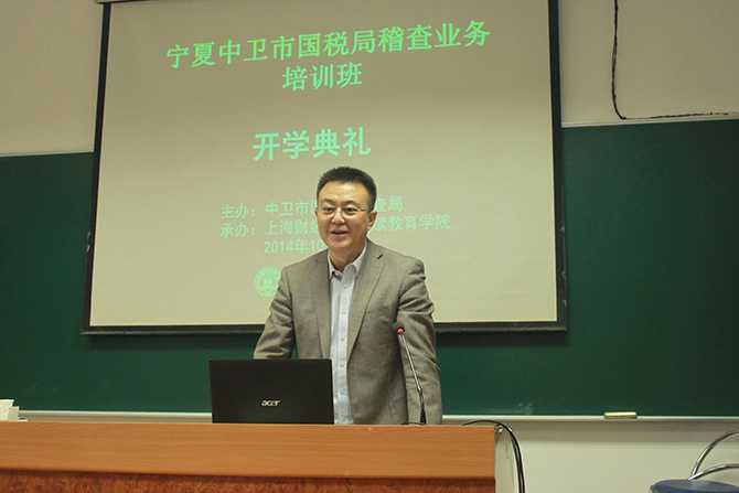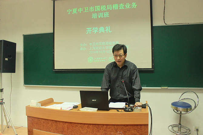 2014年10月18日,宁夏中卫市国税局稽查业务培训班在我院隆重举行。中卫市国税局稽查局马勇局长和上海财经大学继续教育学院党总支书记杨培雷副教授出席了典礼仪式。