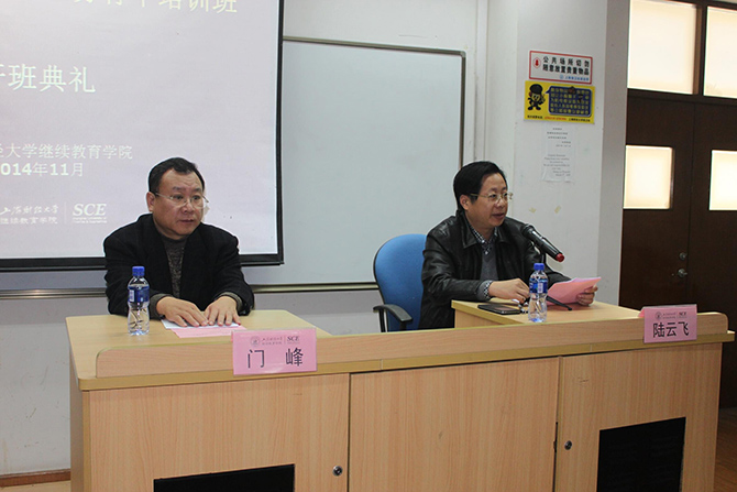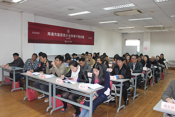 2014年11月18日,“南通市基层统计业务骨干培训班”开班典礼在我校中山北一路校区第七教学楼举行。出席本次开班典礼的嘉宾有:江苏省统计局南通调查局局长陆云飞先生,南通市统计局总统计师许德华先生,上海财经大学继续教育学院门峰院长。