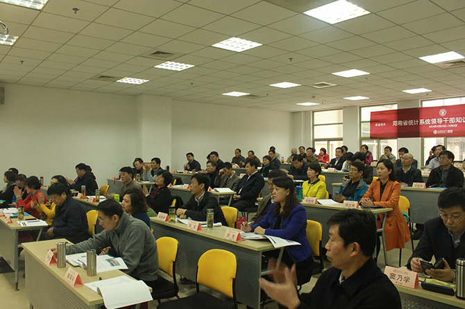 2014年11月29日,“河南省统计系统领导干部知识更新培训班”开班典礼在我校国定路校区行政楼隆重举行。出席本次开班典礼的领导有:河南省统计局党组成员、巡视员薛承旭先生,上海财经大学继续教育学院门峰院长。