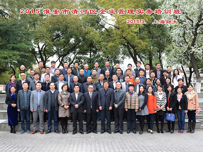 2015年3月23日上午,《2015淮安市清河区企业管理实务培训班》开班典礼在我校中山北一路校区第五教学楼隆重举行。本次培训由清河区委组织部、区委统战部、区工商联共同举办。出席本次开学典礼的嘉宾有:清河区委常委、组织部部长马乃骏先生,清河区政协副主席、新区管委会主任陆宾先生,清河区政协副主席、工商联主席薛睿女士,清河区政协副主席、统战部部长张增元先生,上海财经大学继续教育学院门峰院长。