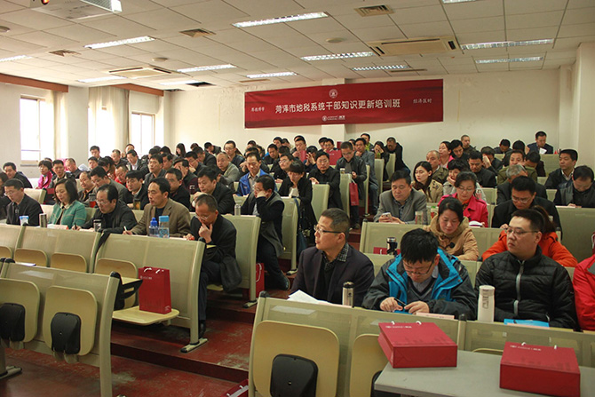 2015年3月24日,“菏泽市地税系统干部知识更新培训班”开班典礼在我校中山北一路校区第七教学楼举行。出席本次开班典礼的嘉宾有:菏泽市地税局直属征收局局长孙显军先生、上海财经大学继续教育学院门峰院长。