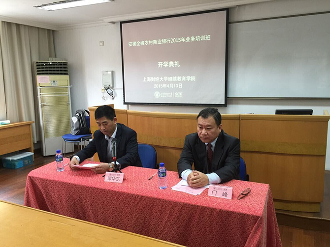 2015年4月13日上午,安徽全椒农村商业银行2015年业务培训班开班典礼在我校中山北一路校区第五教学楼举行。出席本次开班典礼的嘉宾有:安徽全椒农村商业银行经理邹华东先生,上海财经大学继续教育学院门峰院长。