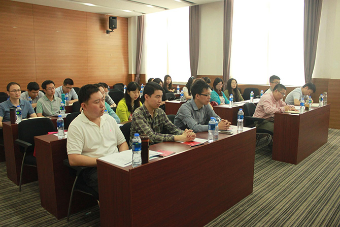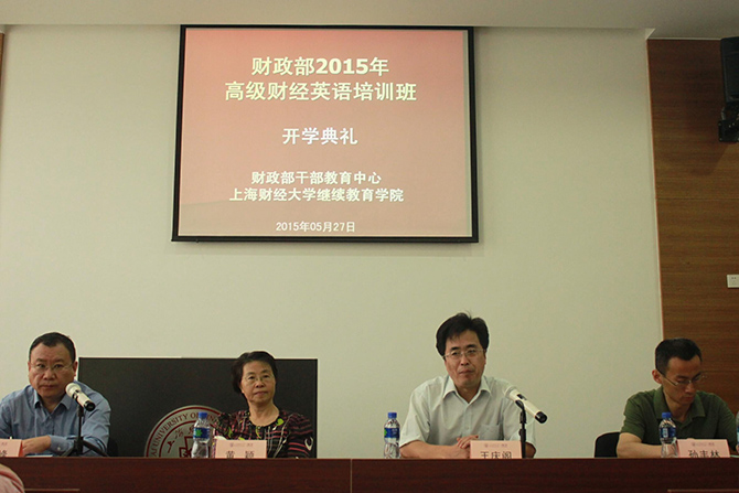 2015年5月27日上午,由财政部干部教育中心主办、上海财经大学继续教育学院承办的“财政部2015年财经英语培训班”在我校中山北一路校区博思楼隆重举行。来自部属机关、事业单位、财政部驻各省专员办的21位学员参加本期培训。财政部干部教育中心王庆阁副主任,上海财经大学黄颖副校长、上海财经大学继续教育学院门峰院长、财政部干部教育中心机关培训处孙丰林副处长出席了本次开班典礼。开班仪式由上海财经大学继续教育学院门峰院长主持。