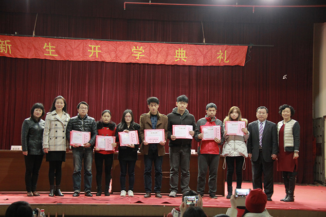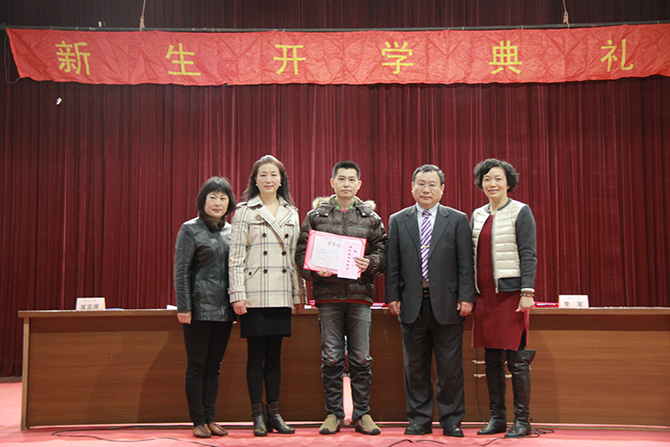 开学典礼上举行了“2015年上海财经大学成人高等学历教育优秀考生奖”的颁奖仪式,钱淑萍副院长宣读了“优秀考生奖”的获奖名单。为了吸引更多的优秀考生报考我校,从2014年开始,我院设立了“成人高等学历教育优秀考生奖学金”,专门奖励报考我校成人高等教育并取得优异成绩的同学。本次共有10名新生获得了“2015年上海财经大学成人高等学历教育优秀考生奖”,其中金融学高起本的蒋琛华同学和会计学专升本的张俊同学分别以512分和391分的高分荣膺优秀考生一等奖学金,另有8名同学获得二等奖学金。