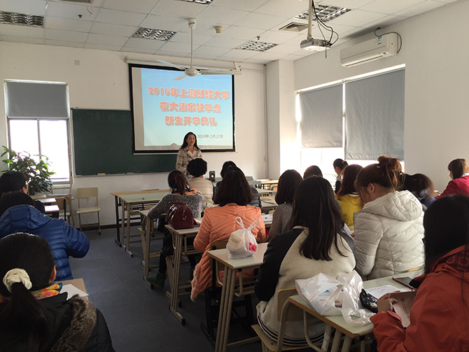 2016年2月27日上午,上海财经大学继续教育学院在中山北一路校区大礼堂举行了一场隆重、热烈的新生开学典礼。上海财经大学继续教育学院院长门峰,副院长钱淑萍,学历教育部主任李军、副主任罗红,2016级新生班主任以及负责招生工作的老师参加了开学典礼。