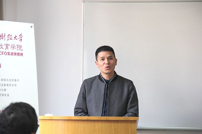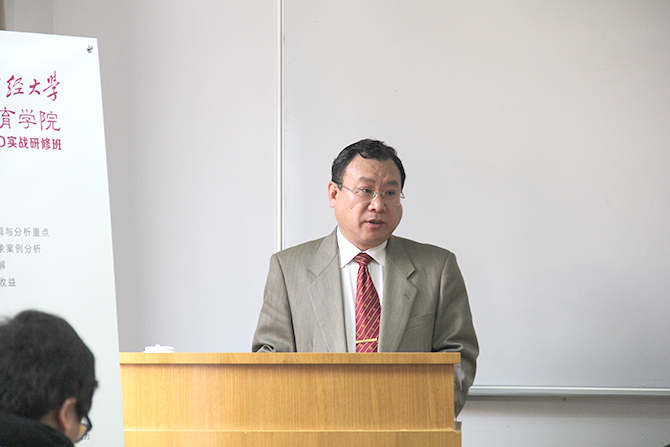 门院长代表上海财经大学继续教育学院,对全体学员的到来表示了热烈的欢迎,欢迎大家加入上海财经大学这个大家庭。首先,门院长向学员们介绍了上海财经大学的发展历程,并提到:“上海财经大学已经建校99周年,我们也在筹办学校的百年校庆,届时作为校友也期望大家能够前来参加学校的‘百年校庆’”。接下来,门峰院长还指出:财务总监实战研修课程是我校通过充分社会调研的情况下,整合了学校雄厚的师资、优势的教育资源而创建的培训课程,期望大家能够在这个培训班中学有所获。最后,门院长祝愿大家在财大学习期间身体健康,学习愉快。