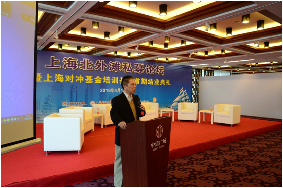 2016年4月10日下午一点,上海北外滩私募论坛暨“上海对冲基金培训基地”首期结业典礼在中信广场隆重举行。