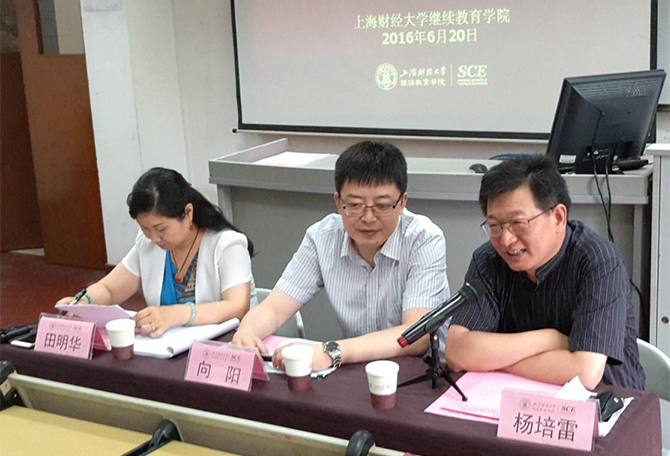 2016年6月20日,成都市统计调查系统――上海财经大学“宏观经济与现代统计”培训班开班典礼在我校中山北一路校区第七教学楼举行。本次开班典礼由成都市统计教育中心田明华女士主持,出席典礼的领导有:成都市统计局机关党委书记向阳、上海财经大学继续教育学院党总支书记杨培雷。