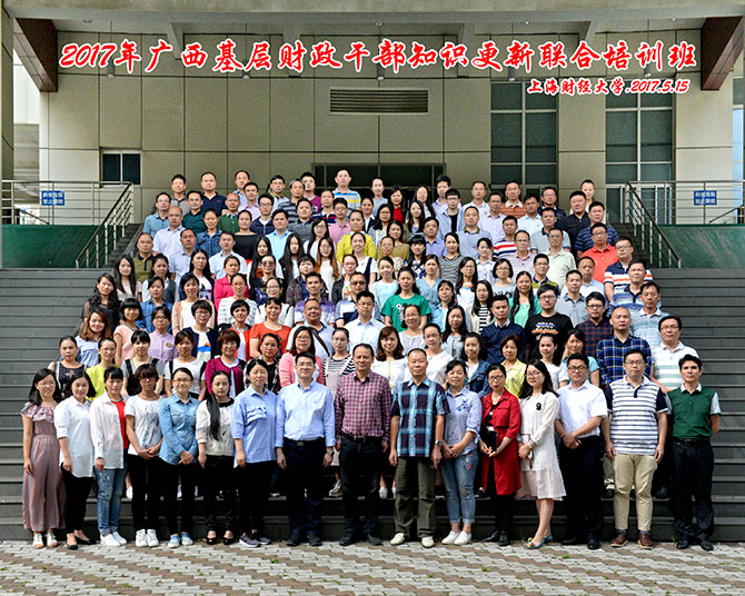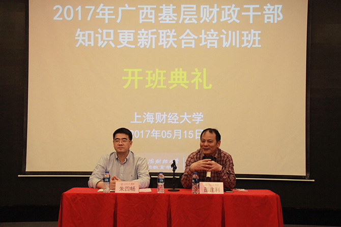 2017年5月15日,在我校中山北一路369校区举行2017年广西基层财政干部知识更新联合培训班的开班典礼。出席本次开班典礼的领导有广西壮族自治区财政厅干部教育中心副主任朱四畅同志,上海财经大学继续教育学院副院长邵建利老师。