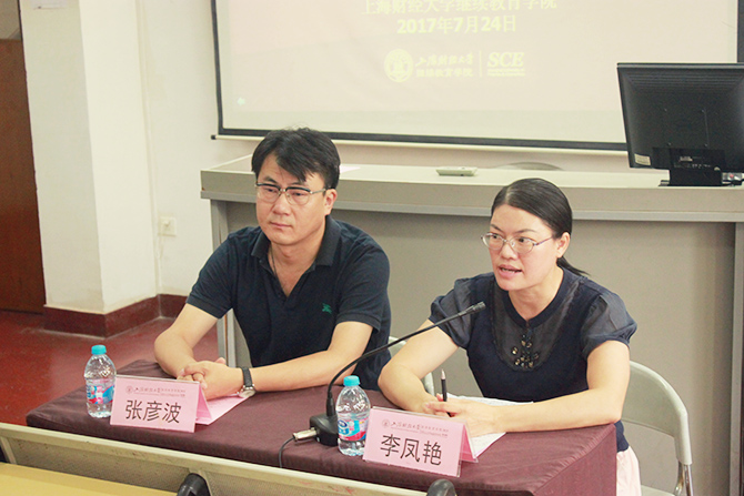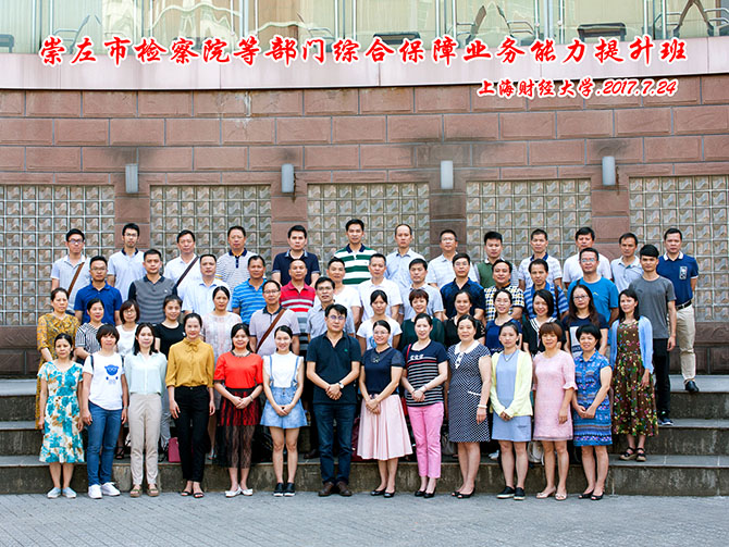 2017年7月24日,在我校中山北一路校区第七教学楼举行崇左市检察院等部门综合保障业务能力提升班的开班典礼,出席本次开班典礼的领导有崇左市检察院机关党委 专职副书记 李凤艳女士,上海财经大学继续教育学院党总支书记张彦波先生。