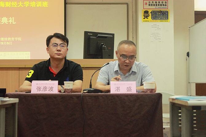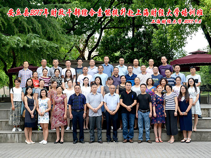 2017年9月6日,在我校中山北一路校区第七教学楼举行安岳县2017年财政干部综合素能提升赴上海财经大学培训班的开班典礼,出席本次开班典礼的领导有安岳县财政局党组成员、副局长湛盛先生 和上海财经大学继续教育学院党总支书记张彦波先生。