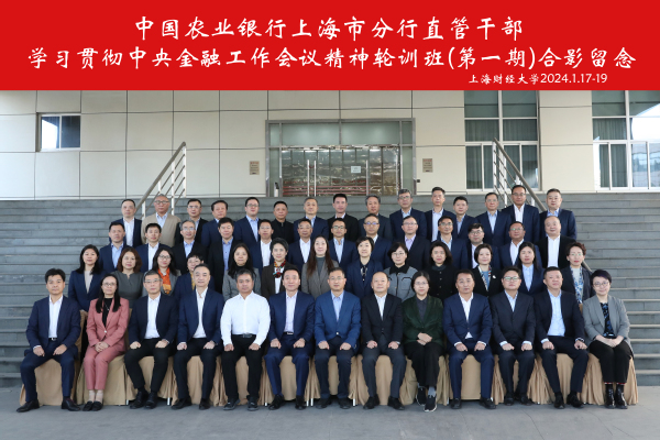 2024年1月17日,中国农业银行上海市分行直管干部学习贯彻中央金融工作会议精神轮训班在博思楼裙楼405教室举行开班仪式。中国农业银行上海市分行党委书记、行长韩国强,上海财经大学党委常委、副校长李增泉出席开班仪式。中国农业银行上海市分行共计52名直管干部参加集中脱产培训。开班仪式由上海财经大学终身教育学院院长姜晖主持。