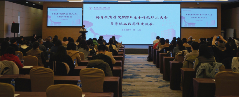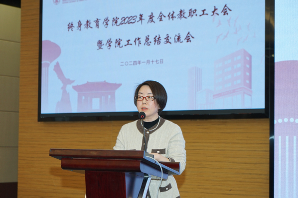 2024年1月17日,终身教育学院2023年度全体教职工大会暨学院工作总结交流会顺利举行。学院党政领导班子、工会副主席和全体教职工参加会议。会议由学院直属党支部书记方卉主持。