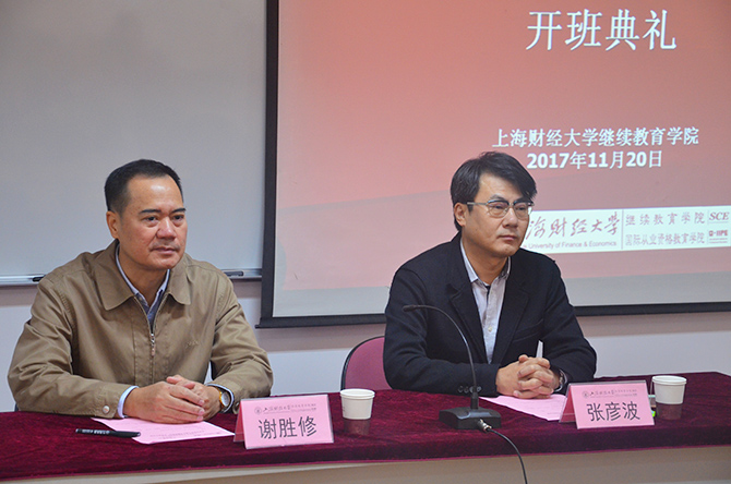 2017年11月20日,在我校中山北一路校区第七教学楼举行广西宏桂资本运营集团有限公司 “资本运营能力提升专题研修班”的开班典礼,出席本次开班典礼的领导有广西宏桂资本运营集团有限公司党委副书记、副董事长、总经理谢胜修先生、上海财经大学继续教育学院党总支书记张彦波先生。