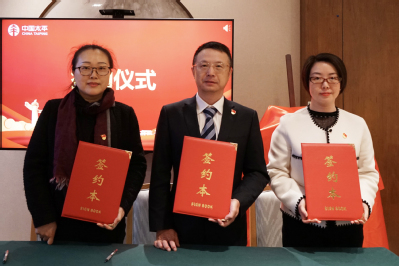 太平人寿上海分公司个险党支部书记李铀、终身教育学院直属党支部书记方卉、金融学院专职组织员李书华分别代表三方签署党建共建协议并共同揭牌。根据协议,三方将以党建共建为载体,从组织共建、人才共育、业务共促、资源共享、活动共办等方面开展共建合作,发挥各自优势,统筹各方资源,形成强大合力,以高质量党建引领三方事业高质量发展。