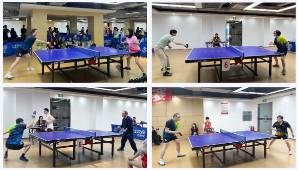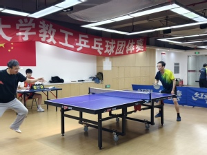 在5月7日下午的小组赛C组赛中,终身教育学院代表队第一轮2:3惜败数学学院代表队,第二轮4:1赢得出版社代表队,最终以小组第二出线进入八强赛。5月14日下午,在四分之一决赛中,八进四遇卫冕冠军图书馆队,去年和乒乓劲旅角逐惜败的场景还依稀在目,面对这次“过早的相遇”,学院体育健儿并未露怯。虽然前两局惜败,张仰荣老师在2:0落后的情况下,不乱阵脚,以3:2逆风翻盘获得开门红。由林芳副院长、李毅老师组成的混双团队配合默契,以3:2绝对优势获胜,再斩获珍贵1分。面对2:2的胶着赛势,决定胜负的男单赛至关重要,学院参赛队员白澎老师不负众望,通过远抽、快扣等高难度动作赢得此局。学院代表队以总比分3:2微弱优势晋级四强。