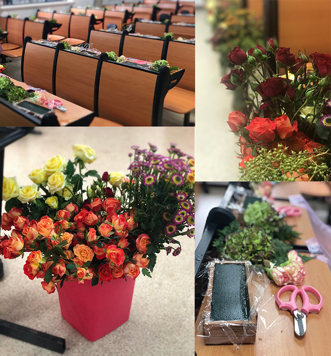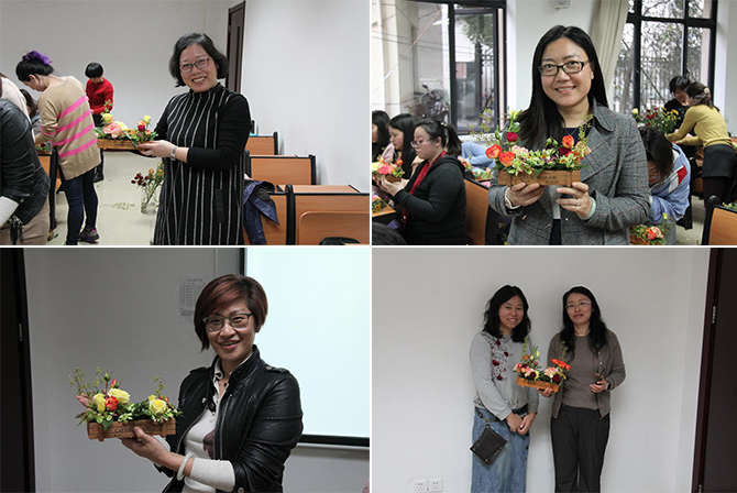 3月14日下午,我院为庆祝三八妇女节之“美丽生活,鲜花相伴”活动在第六教学楼一楼105教室顺利举行。我院三十余名女教师参与了活动,现场气氛活跃,花香四溢,欢声笑语,充满着浓浓的春日气息。