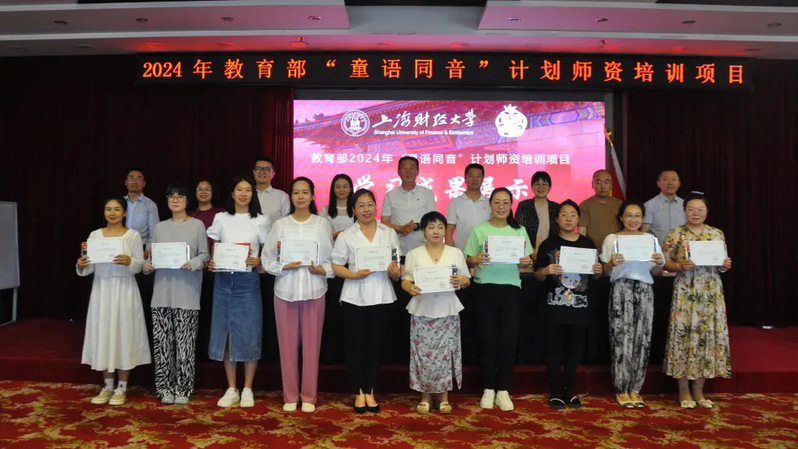 在激昂的《爱我中华》合唱旋律中,2024教育部“童语同音”计划师资培训学员成果展示交流会在乌兰察布市圆满落幕。推广普及国家通用语言文字是构筑中华民族共有精神家园、铸牢中华民族共同体意识的重要前提。自2021年教育部启动“童语同音”计划以来,上海财经大学作为选派实施单位,项目团队先后历经新疆和田、云南红河、西藏日喀则、四川省凉山州,近期圆满完成2024年第一期内蒙乌兰察布市线下送教。
