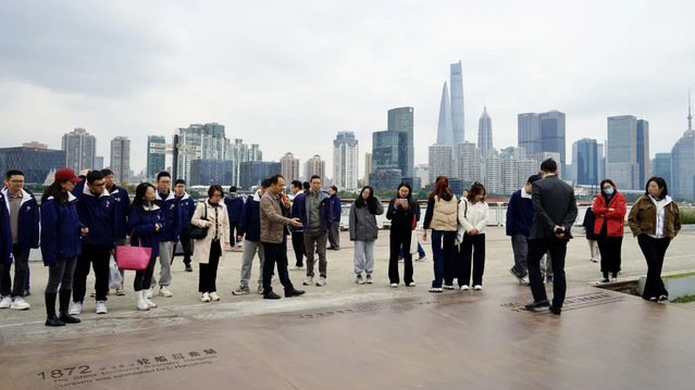 活动伊始,双方成员沿着习近平总书记深入杨浦滨江考察时的足迹一路前行,在讲解员的带领下,回溯“中国近代工业文明长廊”的百年之变,感悟贯穿在地标景观中的城市文脉与家国情怀,从“人民城市”的建设与发展中汲取争先创优、真抓实干的的时代力量。