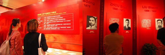 《共产党宣言》史料展共分为四单元:第一单元、科学社会主义的诞生;第二单元、《共产党宣言》在中国的传播;第三单元、早期领导人和《共产党宣言》的故事;最后一个单元是原著的展示。党员们十分认真的学习了每个单元的内容。