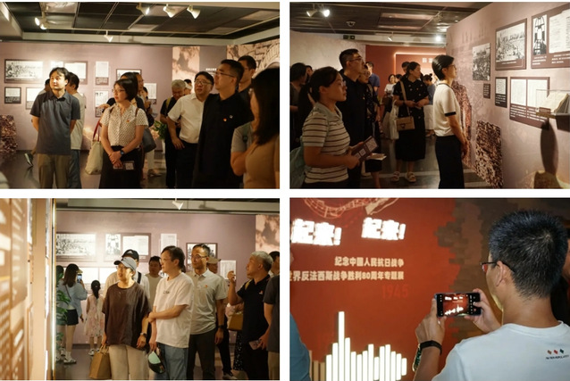 首先,大家共同前往上海图书馆,参观《起来!起来!起来!——纪念中国人民抗日战争暨世界反法西斯战争胜利80周年专题展》。通过沉浸式学习“中流砥柱”“淞沪烽火”“携手反战”等五大板块内容,大家深刻认识中国共产党在抗日战争中的中流砥柱作用,深入了解龙华英烈的动人事迹,深切感受上海作为抗战重镇的责任与担当。大家还驻足细观珍贵史料,体验互动装置,重温伟大的抗战精神,从中汲取砥砺前行的不竭力量。