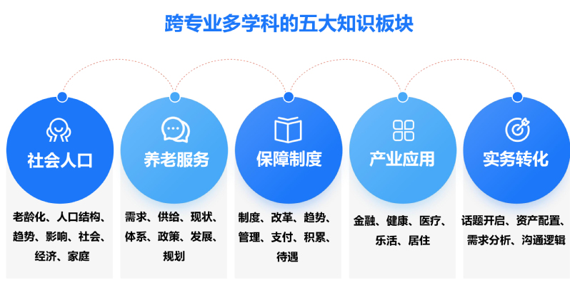 为解决金融人才的养老转型,上海财经大学聚焦养老金融发展趋势,汇聚学界和业界顶尖师资,打造专业养老规划课程培训项目。培养具备人口结构变化及其对个体和社会经济影响的系统知识,对“老”和老年生活需求有共识与共情,并能利用金融工具、健康管理等产品及服务,配合相关的法律法规,做好财务规划、健康规划、生活规划,为客户提供优雅、有品质的养老生活的专业人才。