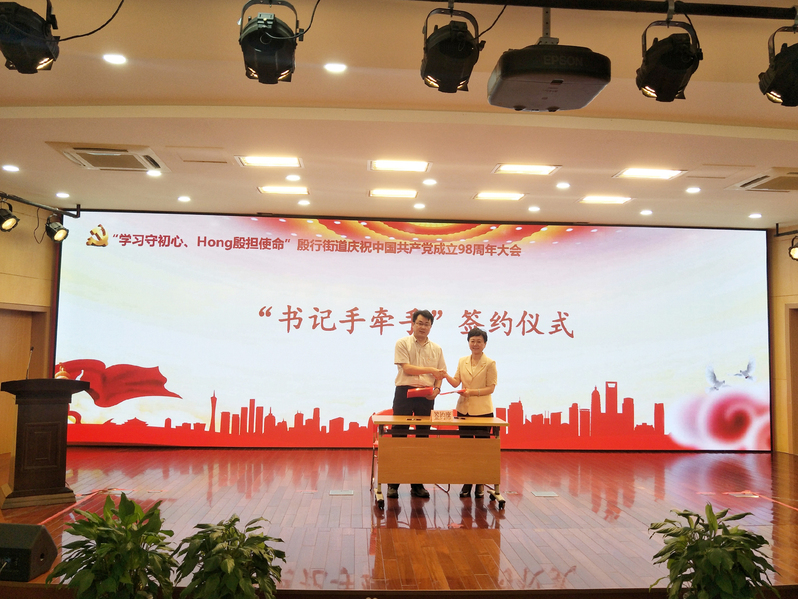 7月1日,正值中国共产党成立98周年之际,上海财经大学继续教育学院党总支—殷行街道党工委共建“书记手牵手”项目签约仪式暨殷行街道庆祝中国共产党成立98周年大会在殷行街道社区文化活动中心成功举行。上海市杨浦区委常委、统战部部长,区政协党组副书记程绣明,杨浦区绿化市容局副局长宁纪宪,殷行街道党工委书记邱红,殷行街道武装部部长李佳,殷行街道党建服务中心党工委副书记胡琳,殷行街道办事处副主任朱强,上海财经大学继续教育学院党总支书记张彦波,副书记、院长谭予絮等出席仪式。殷行街道党工委副书记、办事处主任孙辉主持本次会议。