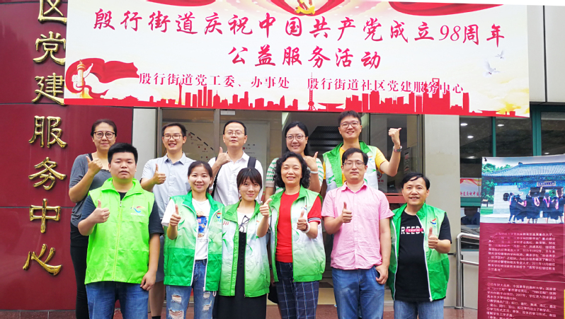 当天上午,学院党总支组织12名党员及教职工参加了由殷行街道党工委主办的公益服务活动,为殷行街道的居民解答教育相关问题。