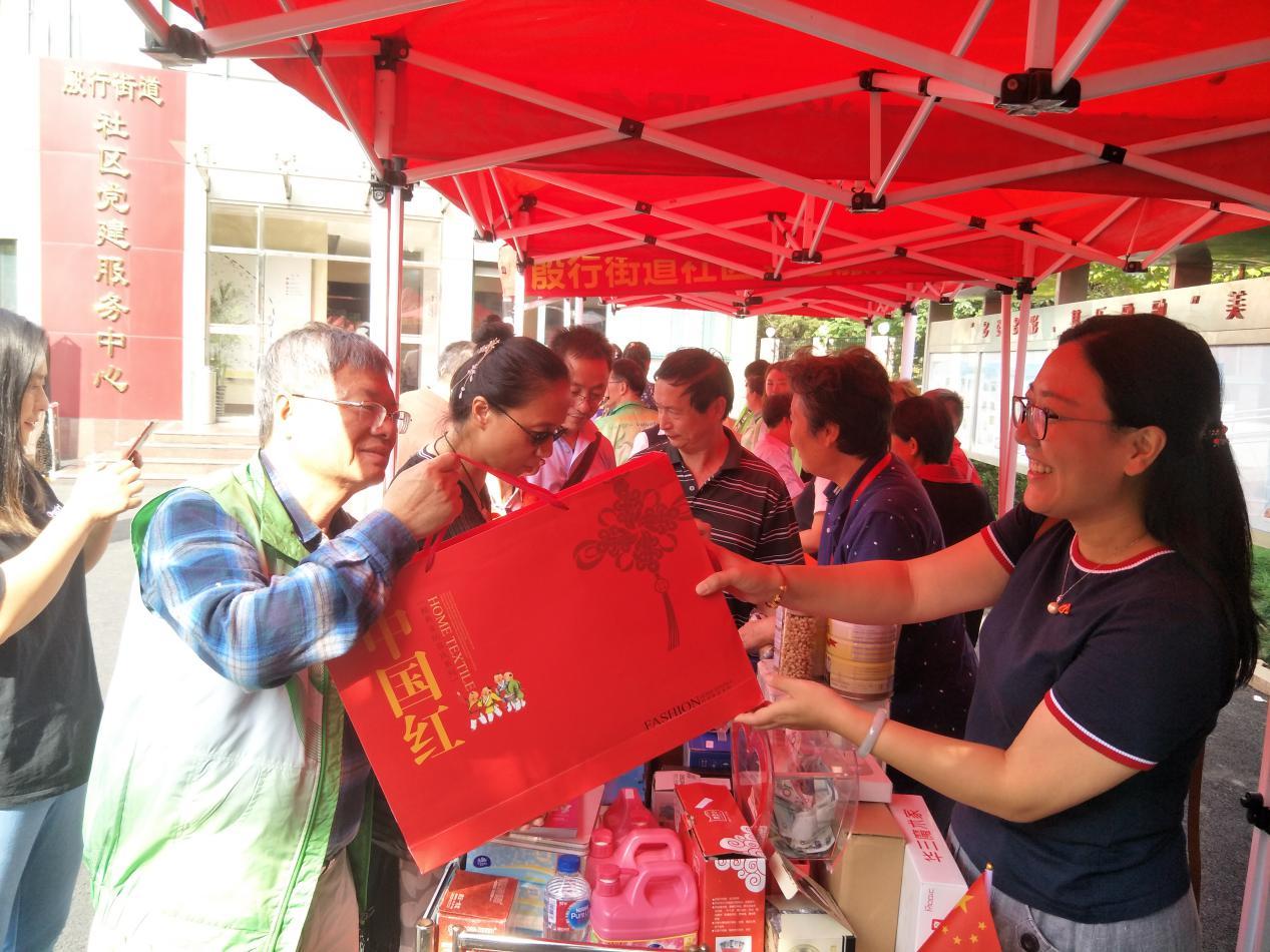早上九点,义卖活动正式开始,前来购买物品献爱心的居民络绎不绝,党员志愿者们一一为大家介绍商品,解答居民朋友的问题。